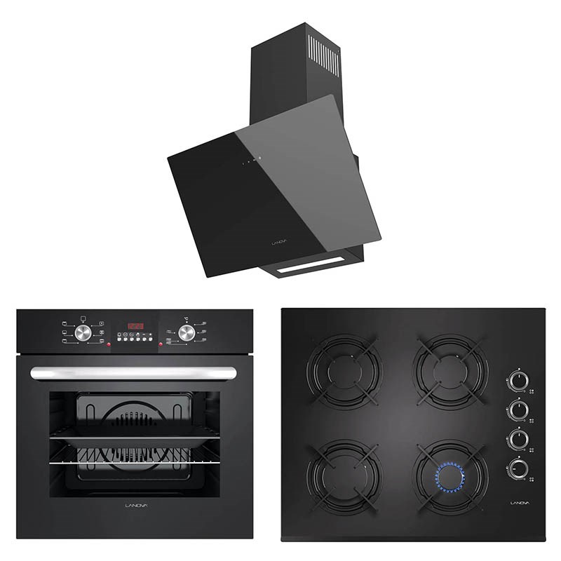 Lanova Black 3206B01 – G16400-201 – 3220B6 Siyah Cam Ankastre Set