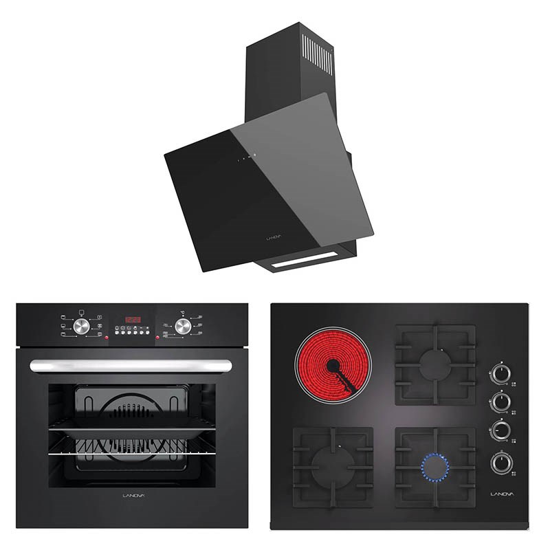 Lanova Vitro 3207B01 – G16310-201 – 3220B6 Tek Gözü Elektrikli Siyah Cam Ankastre Set
